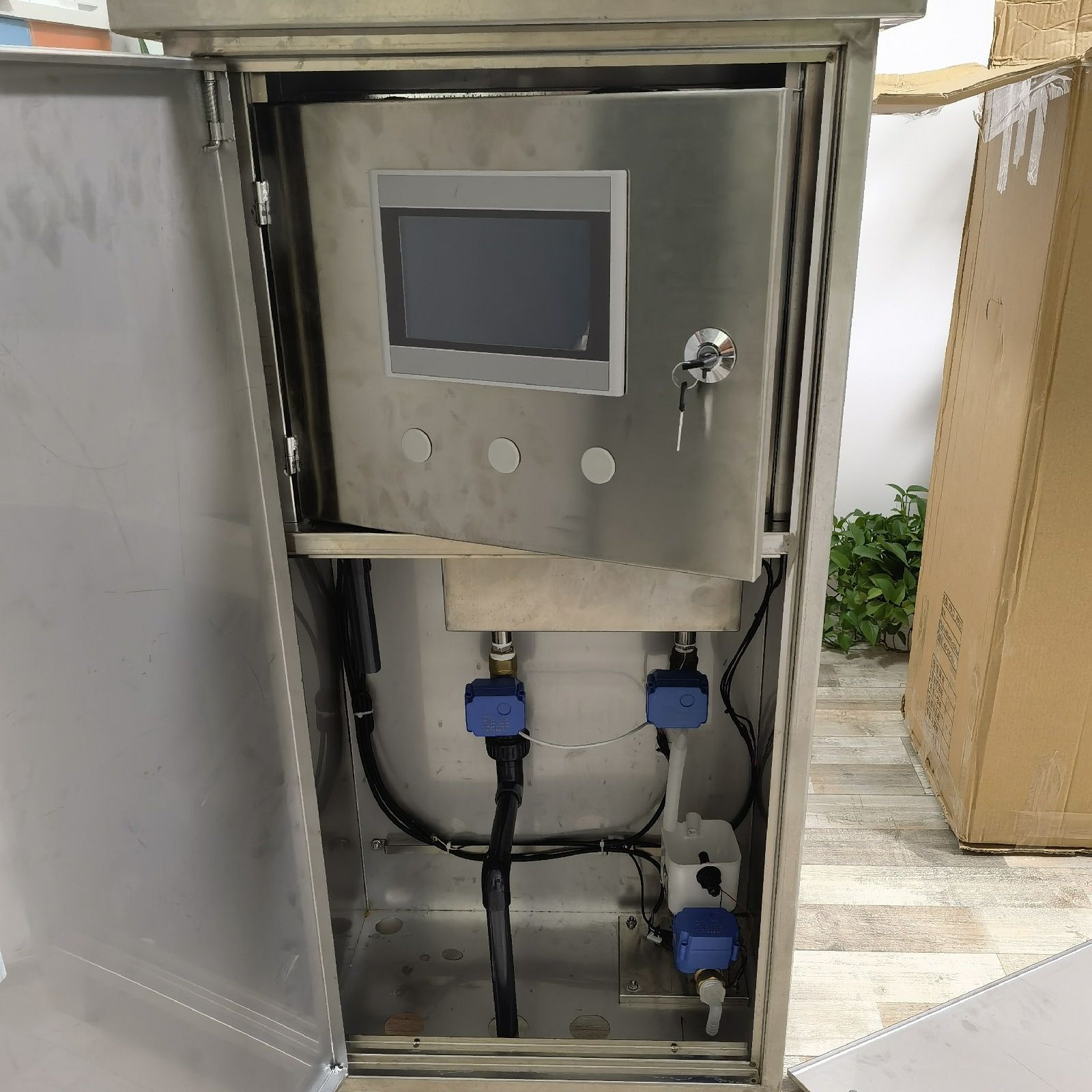 技术参数:名称 型号 参数 水温传感器 JZ-HB 量程-50~100℃,分辨率0.1℃,精度±0.5℃,线长10米 浊度传感器 JZ-HB 量程0~2000NTU,分辨率0.01NYU,精度<±5%fs,线长10米 溶解氧传感器 JZ-HB 量程0~20mg/l,分辨率0.1 mg/l,精度±3%%,线长10米 PH值传感器 JZ-HB 量程0~14,分辨率0.01pH,精度±0.1pH,线长10米 COD传感器 JZ-HB 量程:0.75-370mg/L, TOC 0.3-150mg/,精度:±2% 氨氮传感器 JZ-HB 量程:0.1-1000mg/L分辨率:0.01mg/L和0.01pH,精度:5% FS 电导率传感器 JZ-HB 量程:1μs/cm~200ms/cm,精度:<1% 数据采仪集 JZ-HB 多通道数据采集,液晶屏幕显示,带232和485接口,LCD背光,进行数据采集、存储、及显示;供电方式:220V交流/12V直流并存 金属防护箱 大防护箱 野外防护箱,防湿防潮,内置隔板,外置锁具,内装采集仪,蓄电池,太阳能控制器等 气象站支架 JZ-HB 金属喷漆式支架结构,钢质材料设计,牢靠稳固,带防风拉锁,外观美观,承载防护箱、传感器、太阳能等,功能,安装方便,抗腐蚀处理,抗风能力强,可安装十多种辐射传感器,安装高度符合***要求,可完全适用于野外无人值守观测站点 市电供电 JZ-HB 电源稳定、牢靠,可持续给系统供电 浮球 JZ-HB 浮在水面上安装传感器用,采用塑料盒泡沫结构,探头放置在浮球里面,避免传感器损坏,同时侧面开孔,传感器测量值准确 太阳能供电系统 JZ-HB 太阳能电池板 30W 1块;太阳能板支撑架 1套;蓄电池40AH 1个